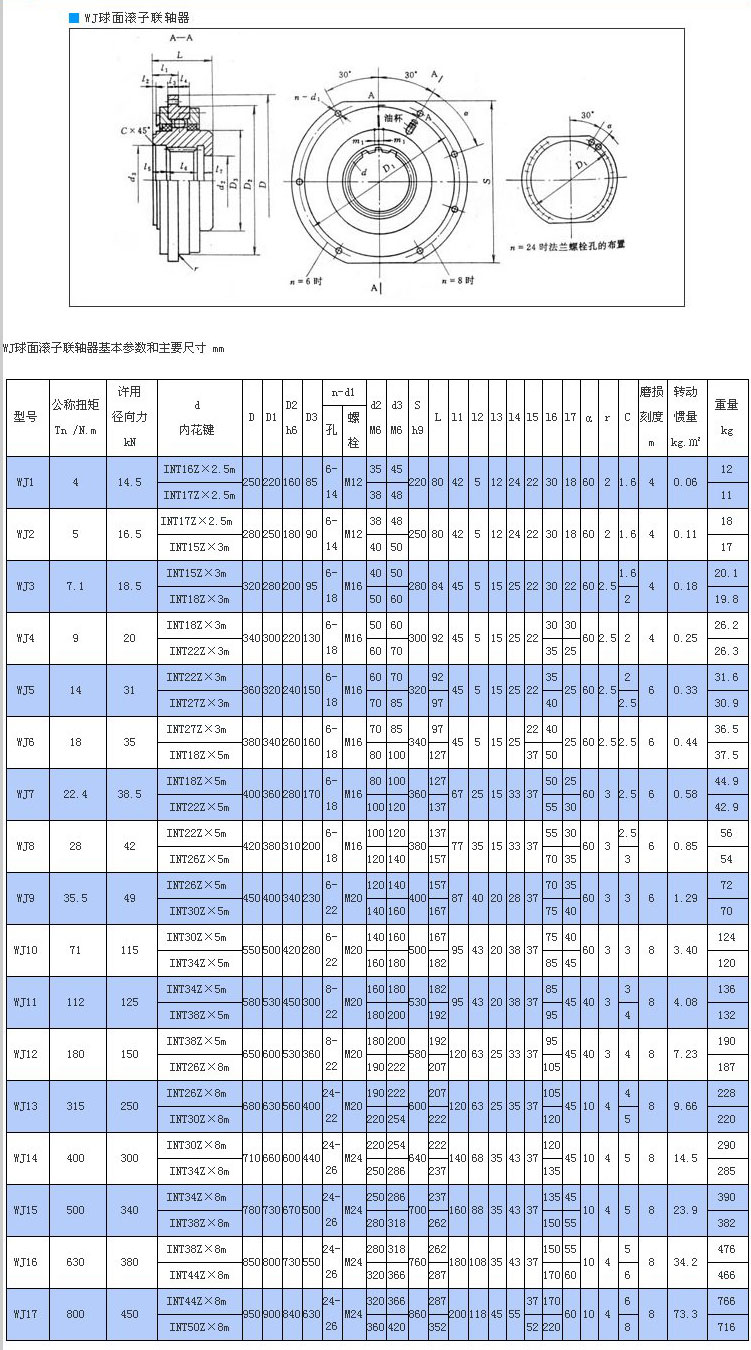 WJ型漸開線花鍵聯(lián)接球面滾子聯(lián)軸器