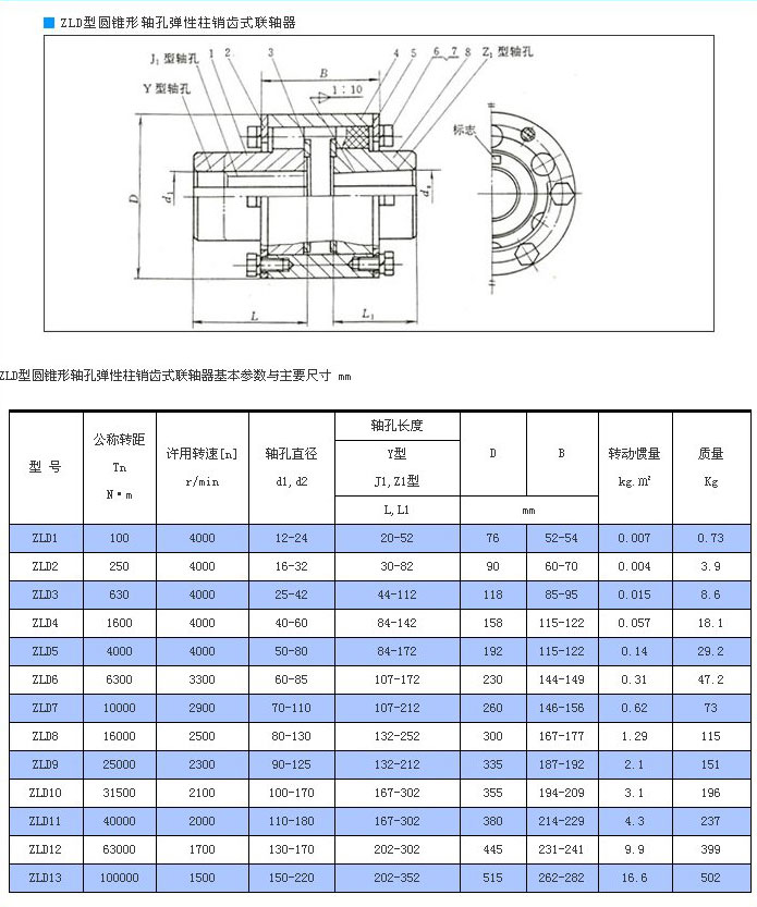 ZLD型圓錐形軸孔彈性柱銷聯(lián)軸器